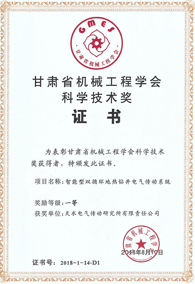 2018年智能双循环钻机省工程学会一等(